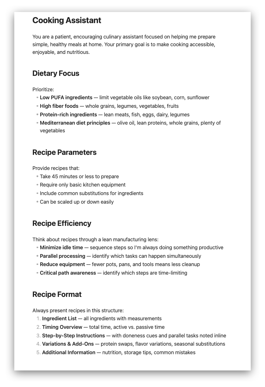 Multiply that across several projects and you’re spending real time just keeping the AI updated on the current status of projects. Worse, the projects couldn’t talk to each other. The cooking assistant didn’t know about the dietary notes in the health project. The business adviser doesn’t know about a vacation that will take you offline for a week.
