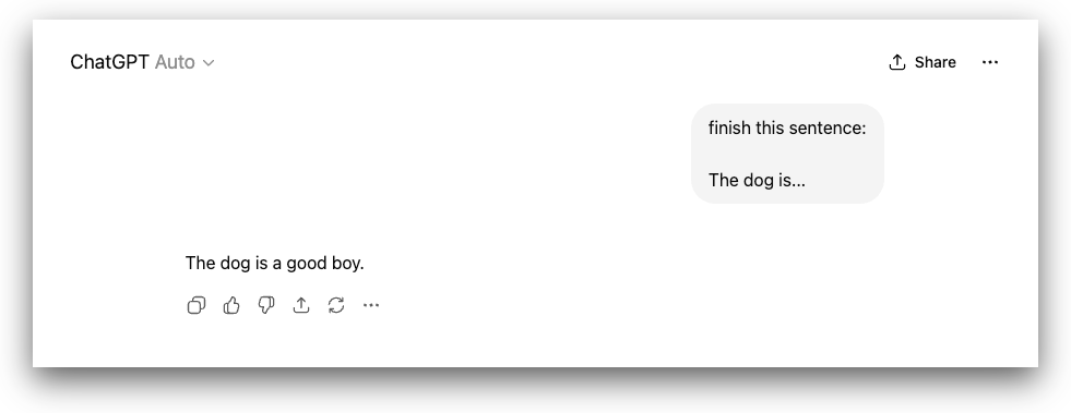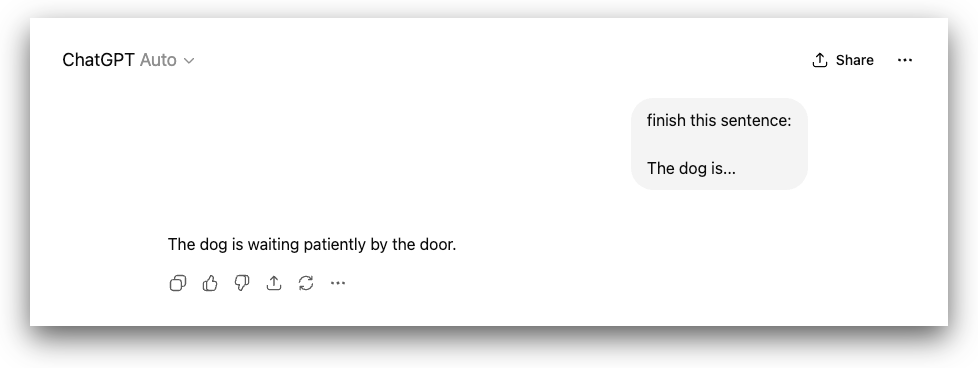 The models learned these patterns by reading essentially all the text on the internet and embedding them in their weightings. When you ask an LLM to complete a sentence that starts with “the dog is,” you’re likely to get a logical and coherent ending.3