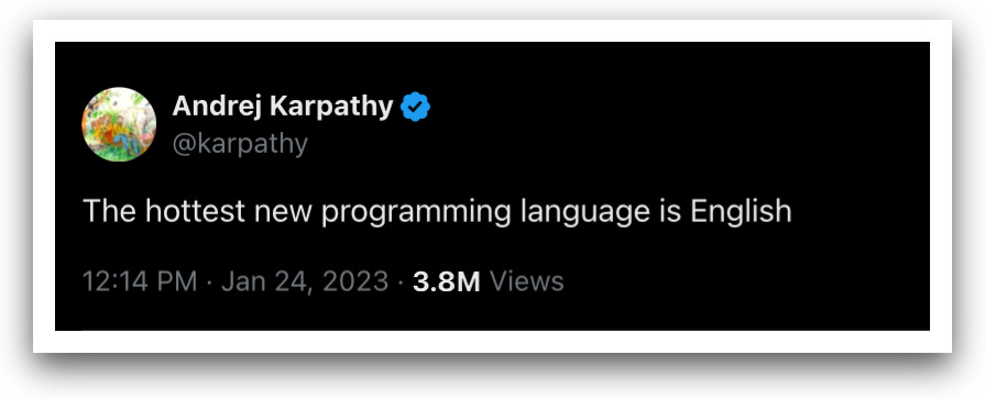 Each piece took a few minutes to set up because the building blocks were already there and they integrate using natural language. As AI researcher Andrej Karpathy memorably put it: the hottest programming language is now English.