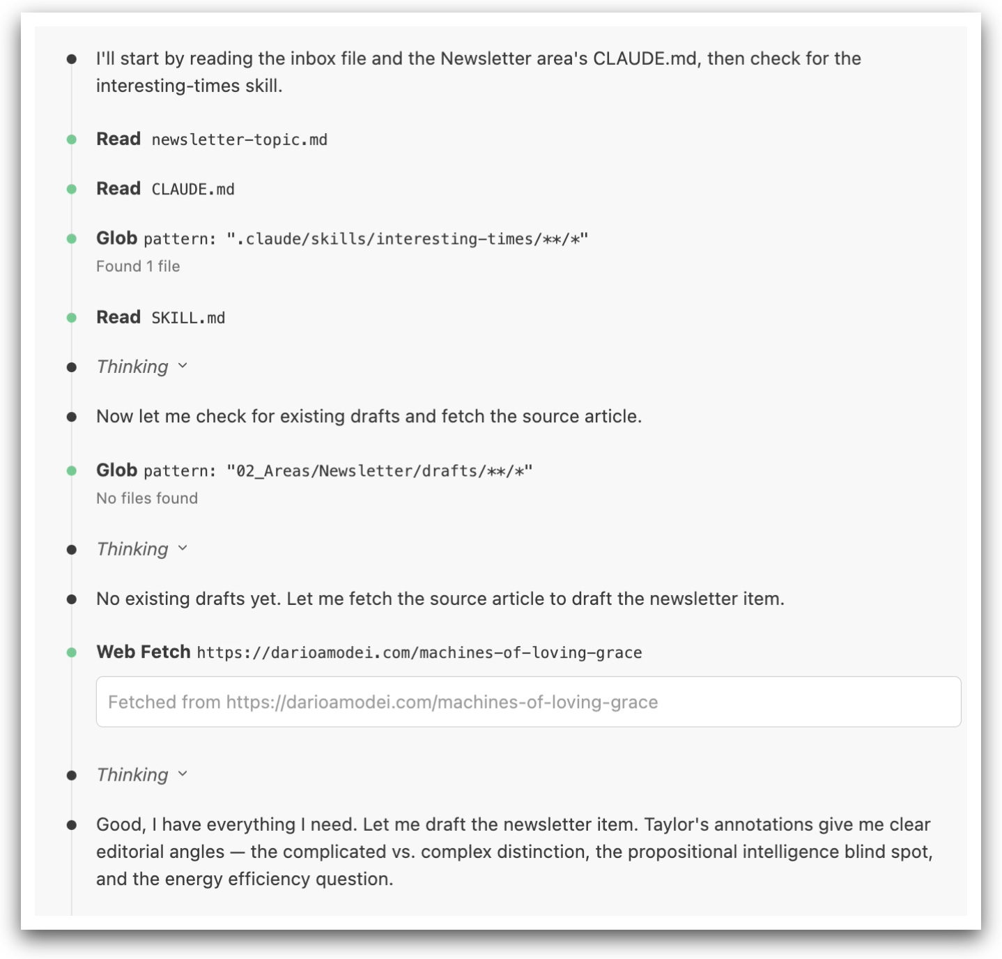 This is my first piece of writing where I used Claude Code and I’ll use that as an example of how knowledge work processes might evolve.