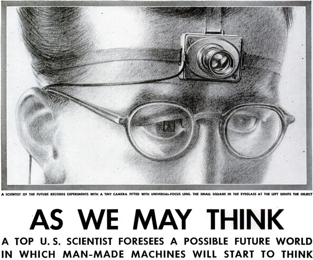 - Vannevar Bush, “As We May Think,” The Atlantic Monthly, July 1945 (reprinted in Life Magazine, September 1945)