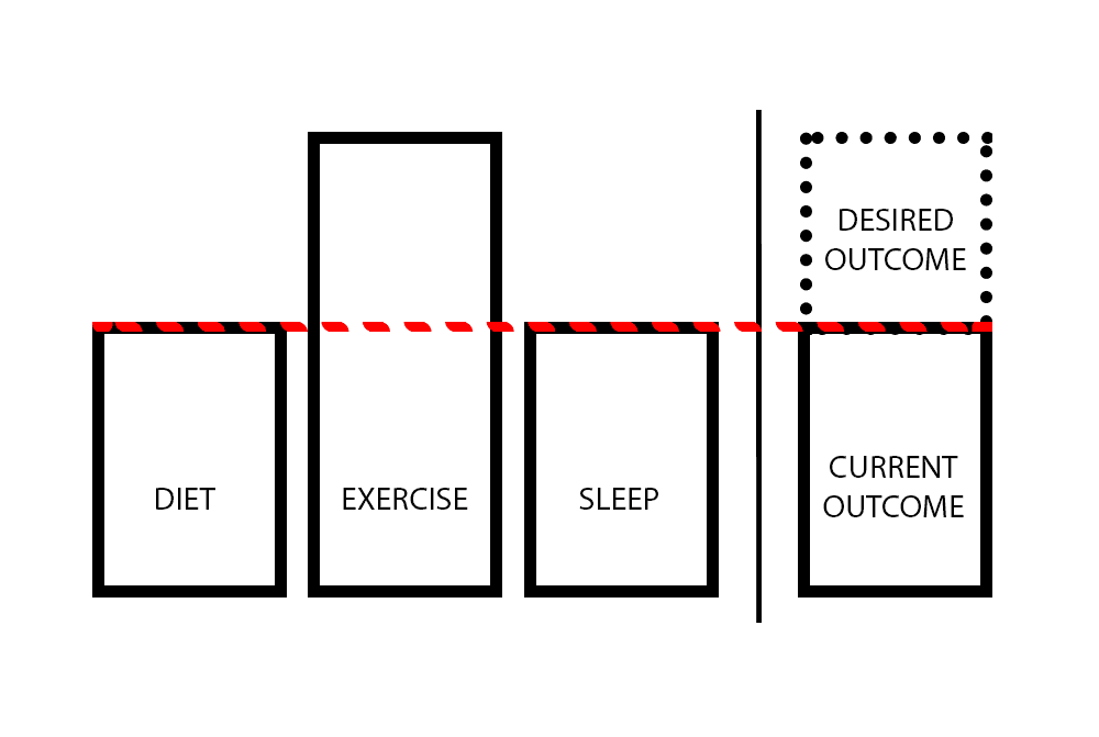 An hour running on the treadmill will burn 400 calories. A scone from Starbucks has 400 calories which, per the second law of thermodynamics, means you’re probably not going to lose any weight. The hormonal benefits of exercise are being counteracted by the lack of sleep. You are spending more and more time exercising without making progress. Why? You’re addressing the wrong limit.
